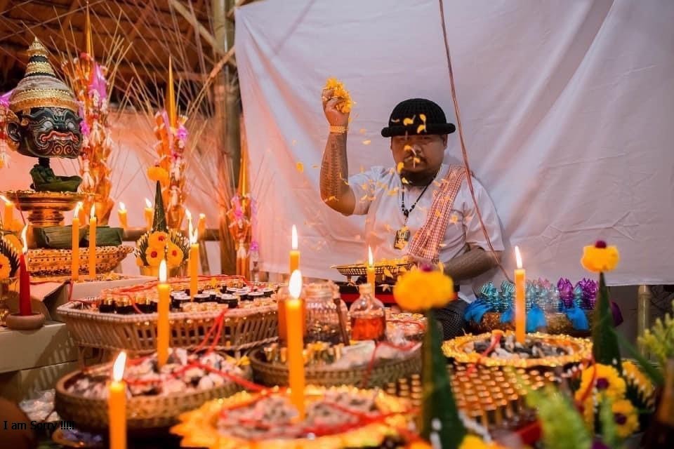 Hoàn toàn là bùa phép trắng, thần linh. Chất liệu bột hơn 100 loại gồm đất chùa, thảo dược, bột gỗ đàn hương, bột tro tàn của nhang trong buổi lễ, kim loại cổ, 1 lá phép takrut.